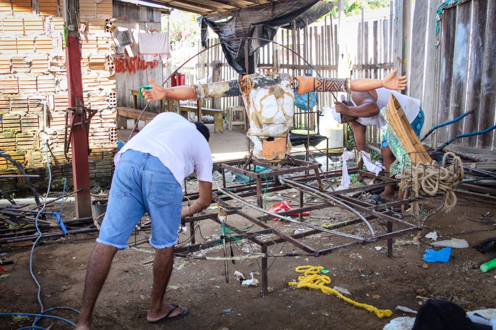 O jovem David Emanuel, que chegou para integrar a equipe de desenhistas do boi, fala com entusiasmo do que será apresentado na arena. “A preparação aqui está a mil, as alegorias virão com melhorias e serão inovadoras”, apostou. O artista junto com o primo Eder, responsável pela figura típica, desenvolveram uma nova perspectiva na construção de alegorias que terão uso de guindaste. Atual bicampeão do festival, o Mini Caprichoso é composto por uma equipe de 70 pessoas e vai em busca do tricampeonato.
