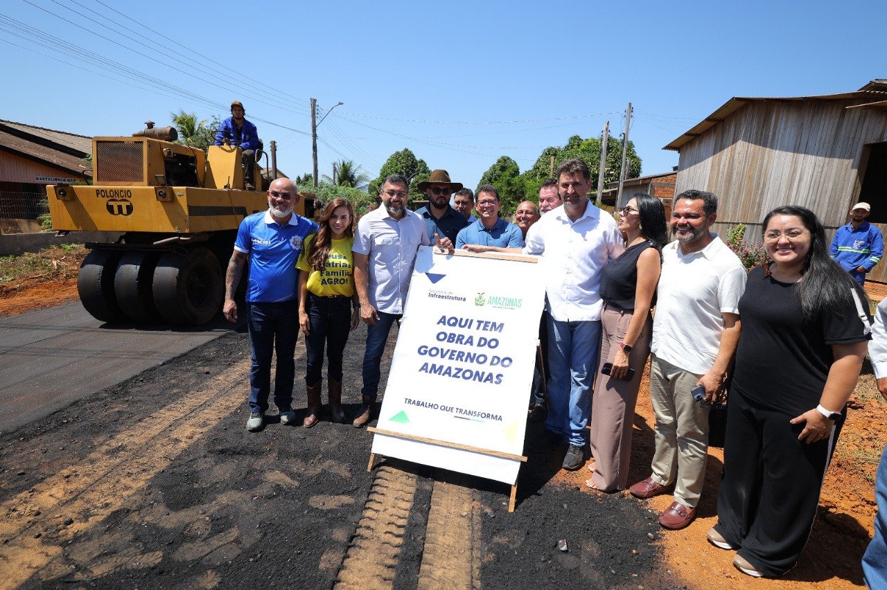 O Asfalta Amazonas já contempla 34 municípios, com R$ 384 milhões repassados via convênios e frentes de trabalho diretas em cidades como Apuí, Novo Aripuanã, Humaitá e Boa Vista do Ramos.