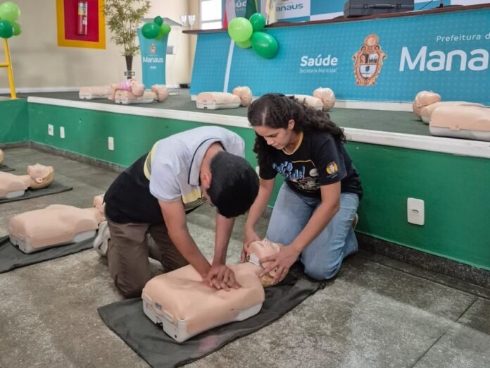Profissionais da área de Qualidade de Vida no Trabalho (QVT) da Secretaria Municipal de Saúde (Semsa), da Prefeitura de Manaus, participaram de um curso de primeiros socorros, na manhã desta sexta-feira, 26/9. O treinamento ocorreu na sede da secretaria, com o objetivo de qualificar as equipes para promover e garantir um ambiente de trabalho mais seguro para os servidores.