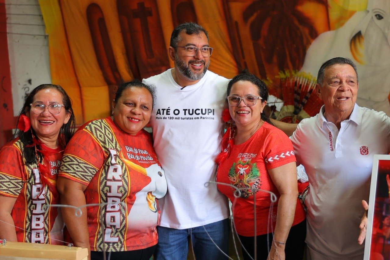 Além das costureiras, o governador cumprimentou os paikicés e kaçauerés, trabalhadores que empurram e conduzem as alegorias para o Bumbódromo, reforçando o reconhecimento aos que atuam nos bastidores e dão vida ao espetáculo.