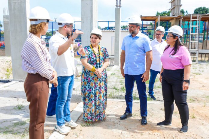 O governador Wilson Lima, acompanhado da ministra das Mulheres, Márcia Lopes, vistoriou as obras da Casa da Mulher Brasileira, localizada no bairro Petrópolis, zona sul de Manaus, na tarde desta terça-feira (23/07). A obra, que será intensificada com a chegada do verão amazônico, é uma parceria entre o Governo do Amazonas e o Governo Federal. O governador Wilson Lima reforçou que a estrutura tem um conceito moderno, principalmente com a integração de diversos órgãos, visando um atendimento mais amplo e especializado.