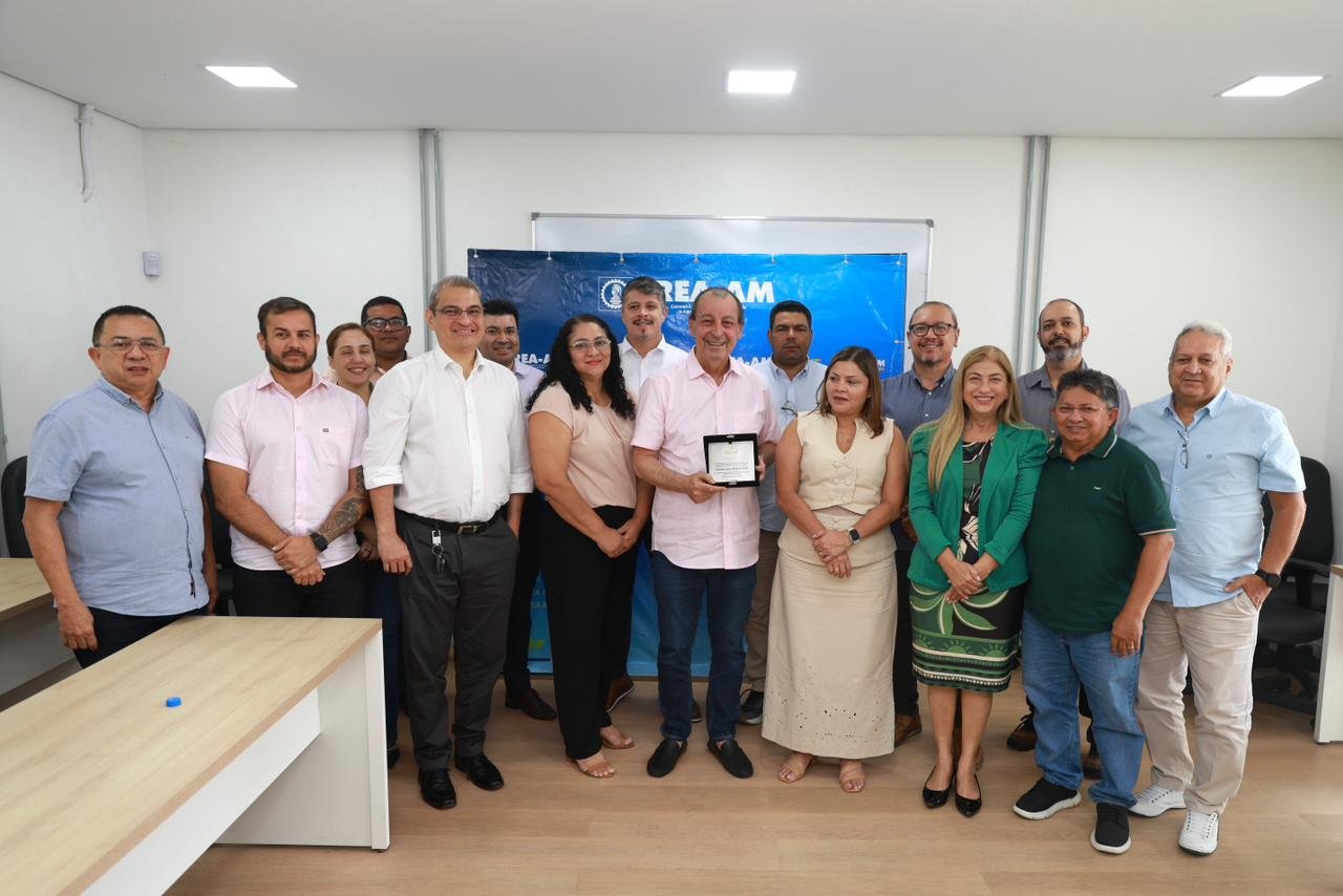 Durante o encontro, Omar Aziz foi homenageado no contexto das comemorações pelos 50 anos do Crea Amazonas, em reconhecimento à sua contribuição para o desenvolvimento do estado e à sua trajetória profissional e política. Engenheiro civil, o senador é registrado no sistema profissional, fato destacado pela presidente do Conselho.