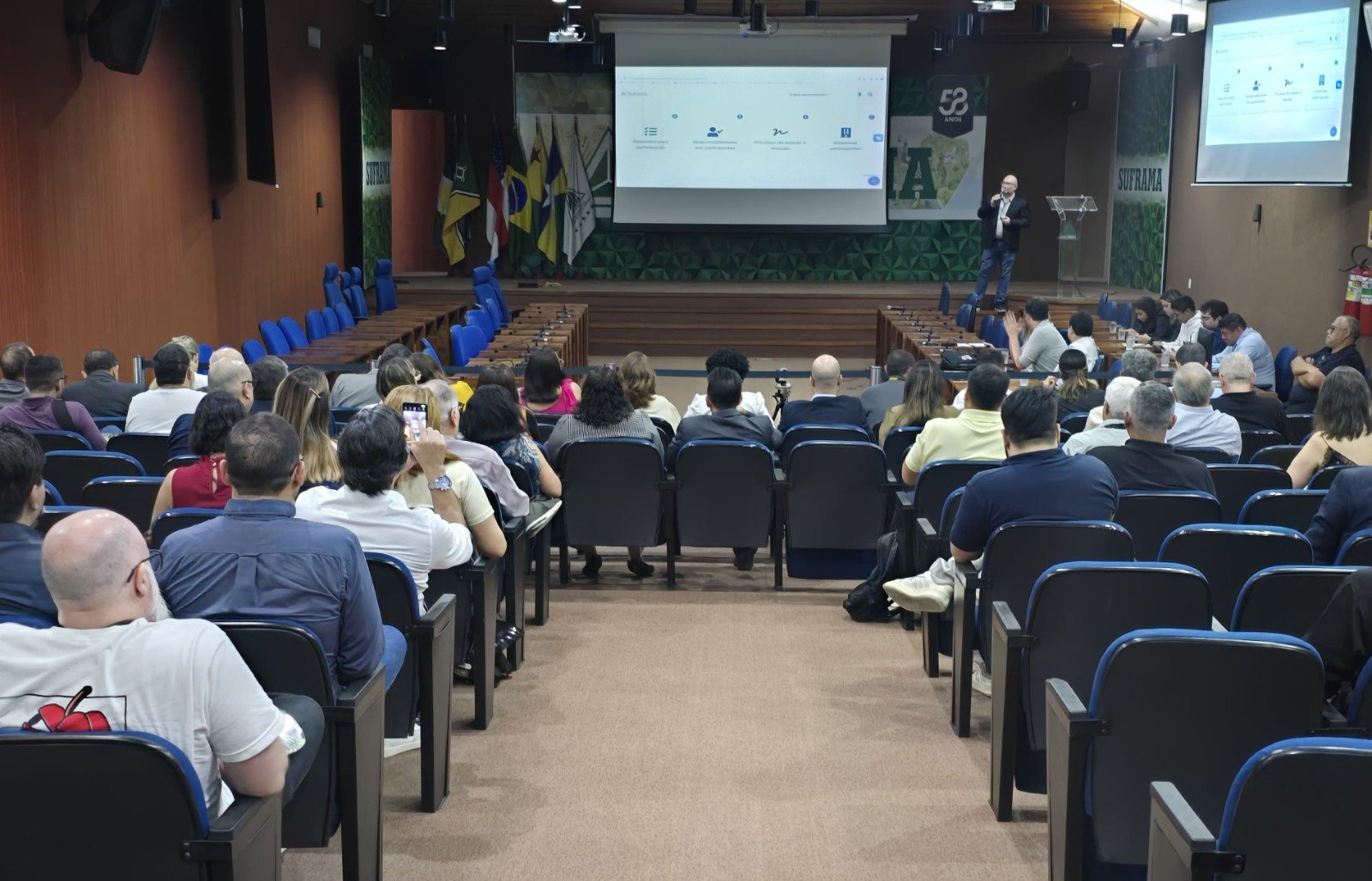 A apresentação do programa “ZFM+ESG” e o reforço do convite para que mais empresas façam a adesão à iniciativa foi um dos destaques do evento “ESG na Amazônia”, realizado nesta sexta-feira (1º), no auditório da Suframa, mediante parceria entre a Autarquia, o Programa Prioritário de Bioeconomia (PPBio), o Instituto de Conservação e Desenvolvimento Sustentável da Amazônia (Idesam) e o Centro de Bionegócios da Amazônia (CBA).