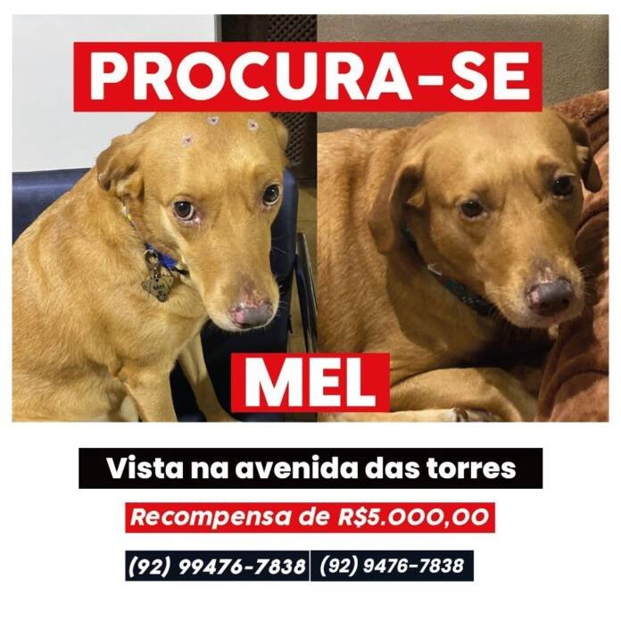 O número 92 99476-7838, está sendo disponibilizado, para quem tiver informações ou encontrar a Mel.