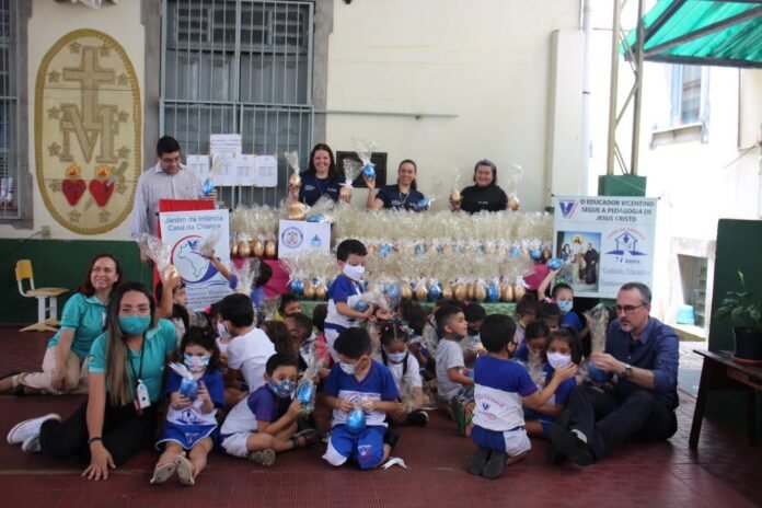 Durante o evento, as crianças prestaram homenagem em forma de agradecimento pela doação dos ovos, em seguida foi realizada uma dinâmica de caça aos ovos com os alunos.