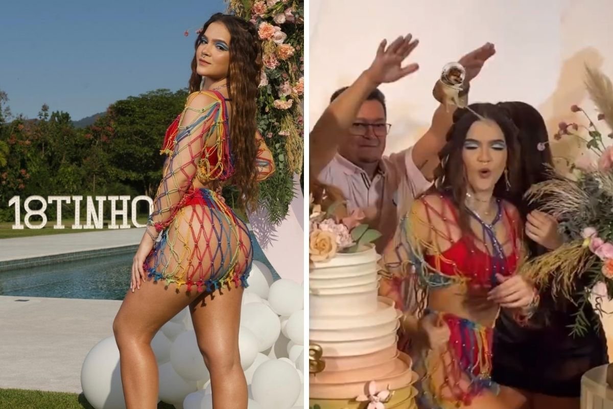A letra do parabéns foi substituída com palavrões. “É pi**, é pi**. É rol*, é rol*”, cantaram os convidados e Mel Maia, com os pais atrás.